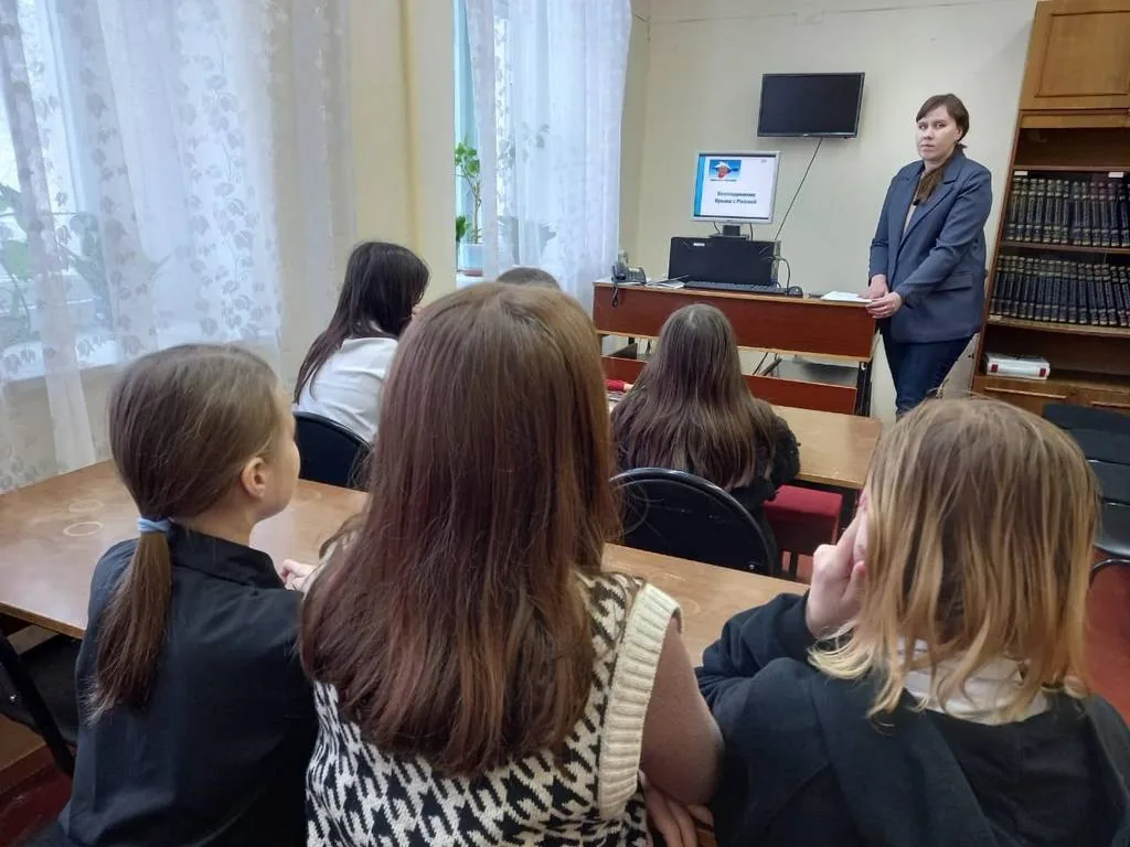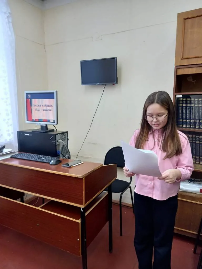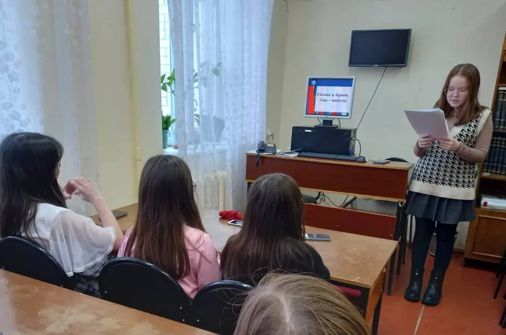 16 марта в библиотеке-филиале №27 для учащихся 4 «В» класса МБОУ«Средняя общеобразовательная школа № 2 г. Йошкар-Олы» проведен познавательный час «Россия и Крым – едины» к Дню воссоединения Крыма с Россией, в рамках проекта «Культура для школьников».