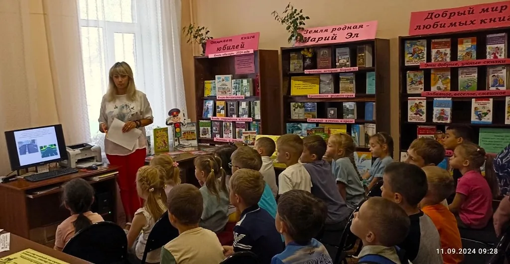 При помощи презентации ребятам рассказали о правилах поведения детей на улице и проезжей части, познакомили с основными терминами дорожного движения: светофор, тротуар, дорога и др. В форме игры ребята закрепили пройденный материал, активно отвечая на вопросы библиотекаря. Затем состоялся просмотр познавательных и обучающих мультипликационных короткометражных фильмов: «Правила дорожного движения для малышей», «Два похожих знака», «Азбука безопасности на дороге».