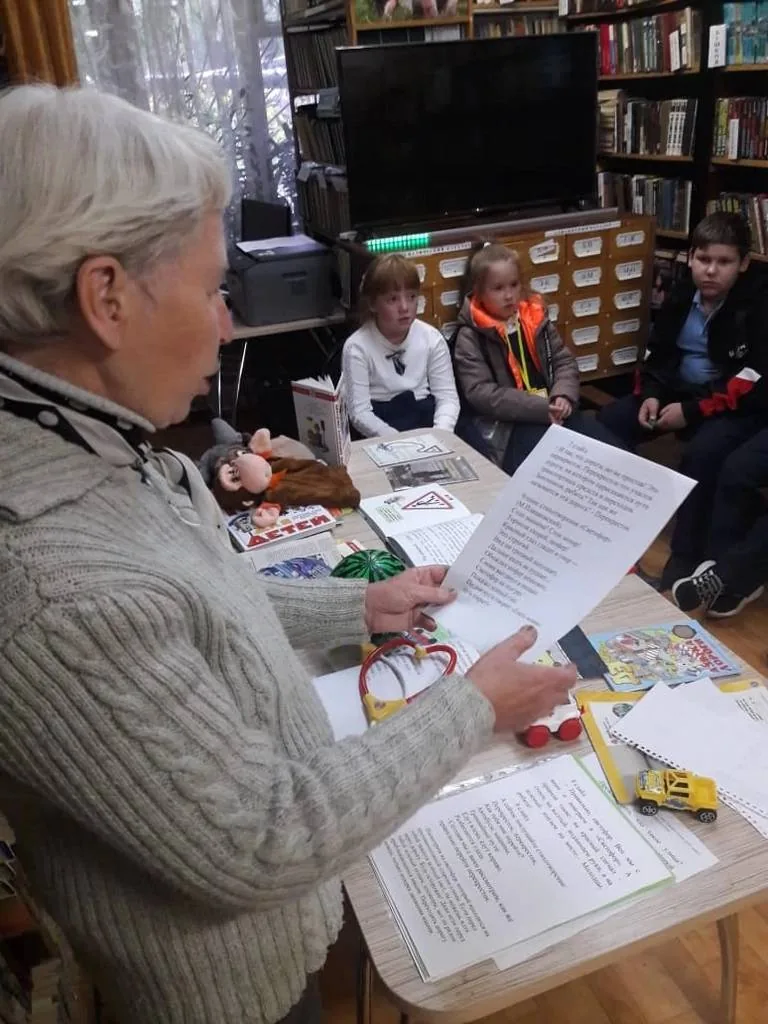 На урок безопасности «Правила воспитанного пешехода» в рамках месячника безопасности по ПДД в библиотеку-филиал № 7 пришли учащиеся 3-х классов (27 человек) МБОУ «Средняя общеобразовательная школа №13». Мероприятие проведено в игровой форме. Дети активно отвечали на вопросы викторины, разгадывали стихи-загадки, рассматривали книги и рисунки с выставки. Очень понравилось участникам побывать актёрами в ролях светофора, водителей, это, конечно, мальчики с маленькими машинками в руках, а в роли пешеходов девочки с куклами-зверушками. Они переходили проезжую часть по изображённой на полу «зебре» по сигналу светофора. Но была и пострадавшая нарушительница, игравшая в мяч на проезжей части. Для неё пришлось вызывать скорую помощь. Далее все дети с удовольствием подвигались на физкультминутке и в заключение ответили на контрольные вопросы о самых важных и простых правилах безопасности для школьников. Все участники узнали много нового (например: что такое тротуар для пешеходов), получили сладкие призы и раскраски. Некоторые из них остались в библиотеке рисовать и раскрашивать картинки по правилам дорожного движения.