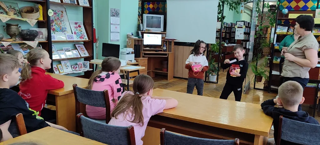 3 июня в библиотеку - филиал №4 на праздник детства «На встречу солнцу» пришли ребята детского школьного лагеря МБОУ «СОШ №24 г. Йошкар-Олы». Библиотекарь поздравила ребят с прошедшим праздником и предложила отправиться в увлекательное путешествие в веселую страну игр и развлечений на поезде «Знаний», где впереди их ждали несколько станций: «Поклонная», «Хохотальная», «Прыгательная», «Обнимательная». Дети активно приняли участие в различных занимательных викторинах: «Сказочная викторина», «Мешочек летних загадок». Участники ответили на шуточные вопросы и поиграли в игры: «Веселые подарки», «Репка», «Угадай маску», «Бабочки». В завершении путешествия все ребята получили сладкие призы. Праздник прошёл весело и интересно.