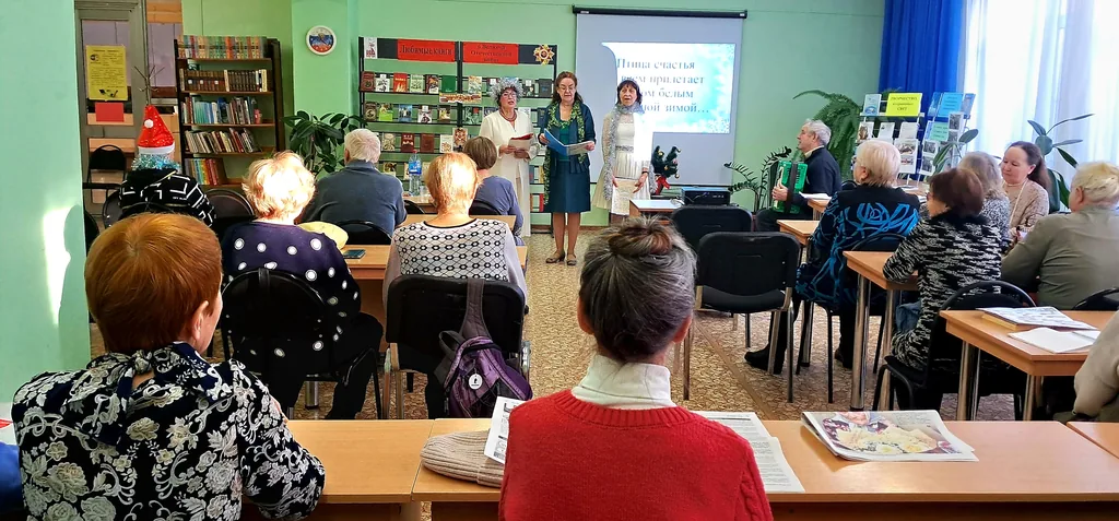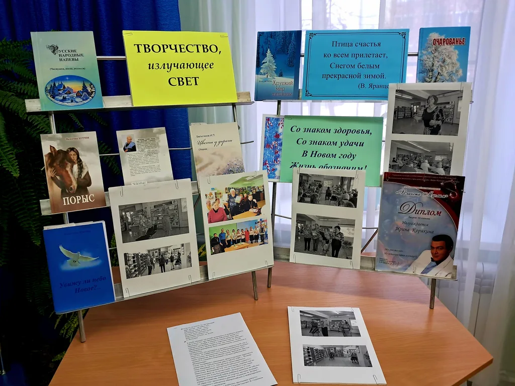 Первое заседание клуба общения для людей пенсионного и пожилого возраста «До и после 55» при Центральной библиотеке имени Р.С. Иванченко прошло содержательно и восхитительно. На выставке «Творчество, излучающее свет» были представлены документы членов клуба: «Порыс» В. Бутрим, «Русские народные напевы» Ф. Москвичевой, «Цветы у дороги» И. Бельтюкова , «Увижу ли небо Новое?..» В. Яранцевой и другие. Тема зимы и чудесных январских праздников талантливо затронута авторами данных книг.