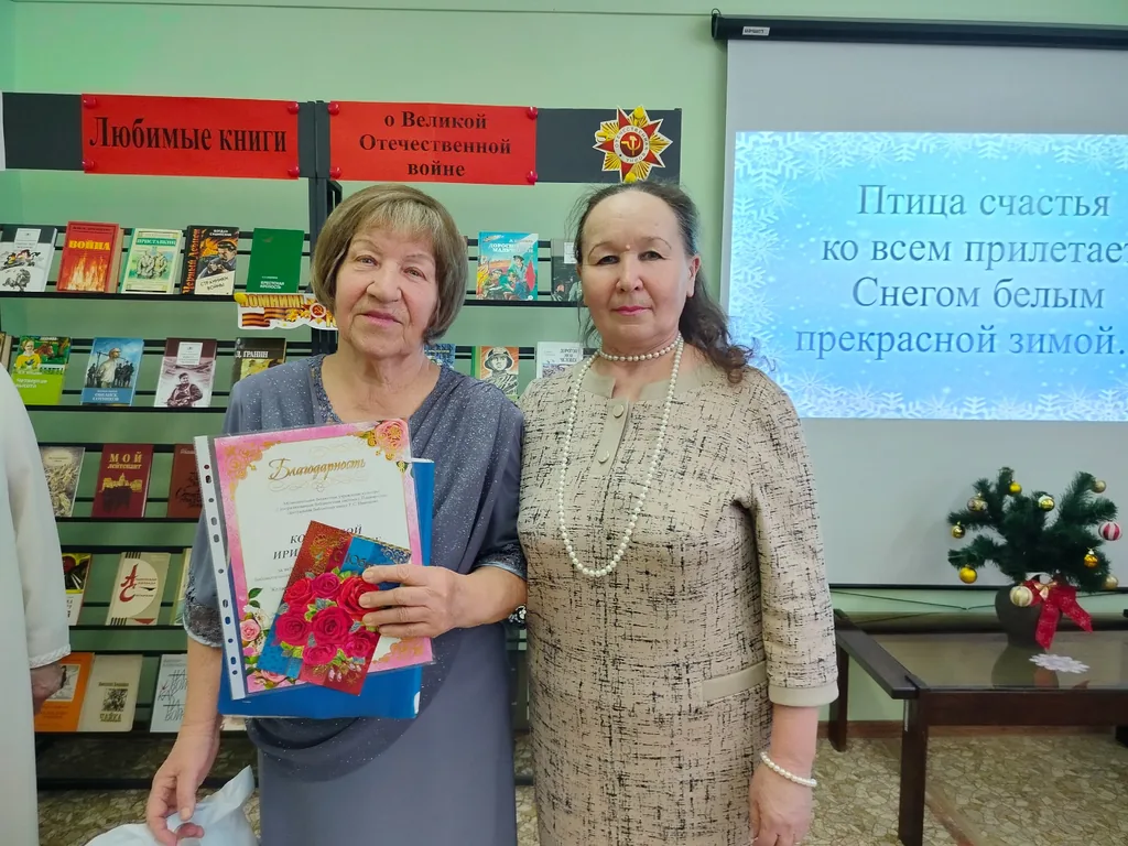 За активное творческое участие в деятельности библиотечного клуба «До и после 55» и в связи с Юбилеем, 85-летием со дня рождения, ей вручена «Благодарность» от руководства МБУК «ЦБС г. Йошкар-Олы» Таракановой А.В.