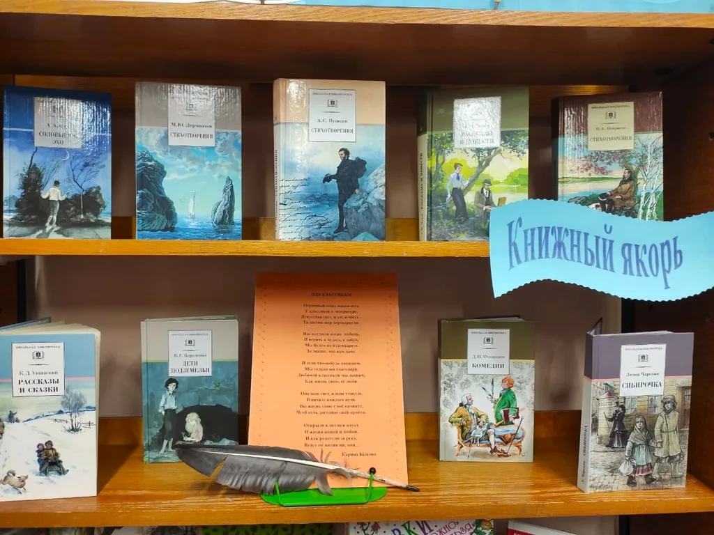 Раздел «Книжный якорь» представлен стихами и прозой классиков русской литературы: А. Пушкиным. М. Лермонтовым, А. Фетом, К. Ушинским, Д. Фонвизиным и другими. Знакомство с классической литературой – это важный этап развития юного читателя и фундамент к формированию хорошего литературного вкуса.