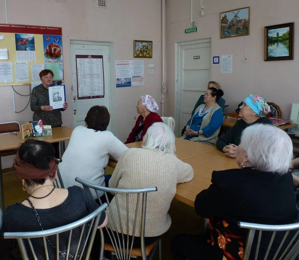 19 марта для отдыхающих клуба «Ветеран» ГБУ РМЭ «Комплексный центр социального обслуживания населения в городе Йошкар-Оле» сотрудник библиотеки-филиала №27 провела мероприятие: путёвка в историю «Мустафой стал на экране», посвященное 115-летию со дня рождения Йывана Кырли.