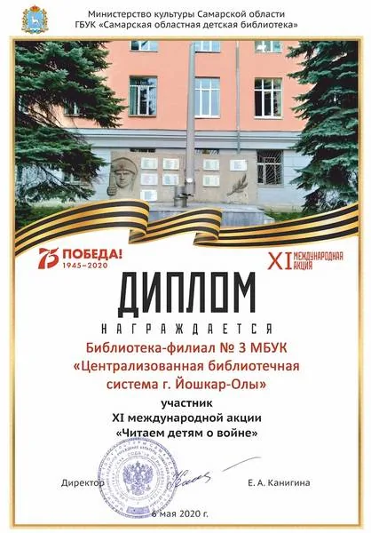 6 мая библиотека-филиал № 3 приняла участие в XI Международной Акции «Читаем Детям о войне». Несмотря на то, что в 2020 г. акция проходила в онлайн-режиме, основная идея осталась прежней – чтение вслух произведений о наиболее ярких эпизодах войны детям в возрасте от 5 до 14 лет.