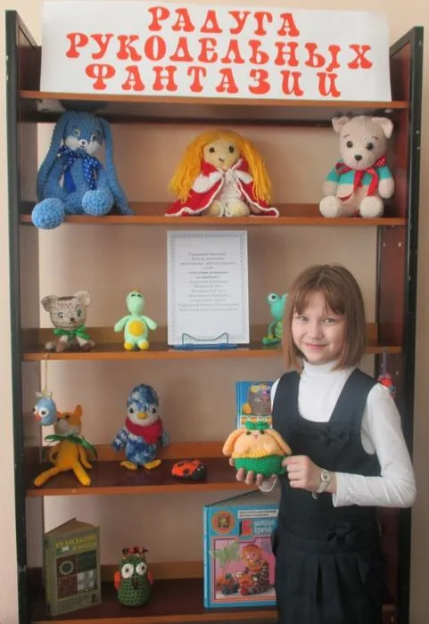 «Радуга рукодельных фантазий» - так называется выставка творческих работ участниц клуба «Академия домашних волшебниц», оформленная в Центральной детской библиотеке. Такая выставка ежегодно проходит в библиотеке как подведение итогов о проделанной работе клуба, основным направлением которого в прошедшем году было изготовление вязаных игрушек.