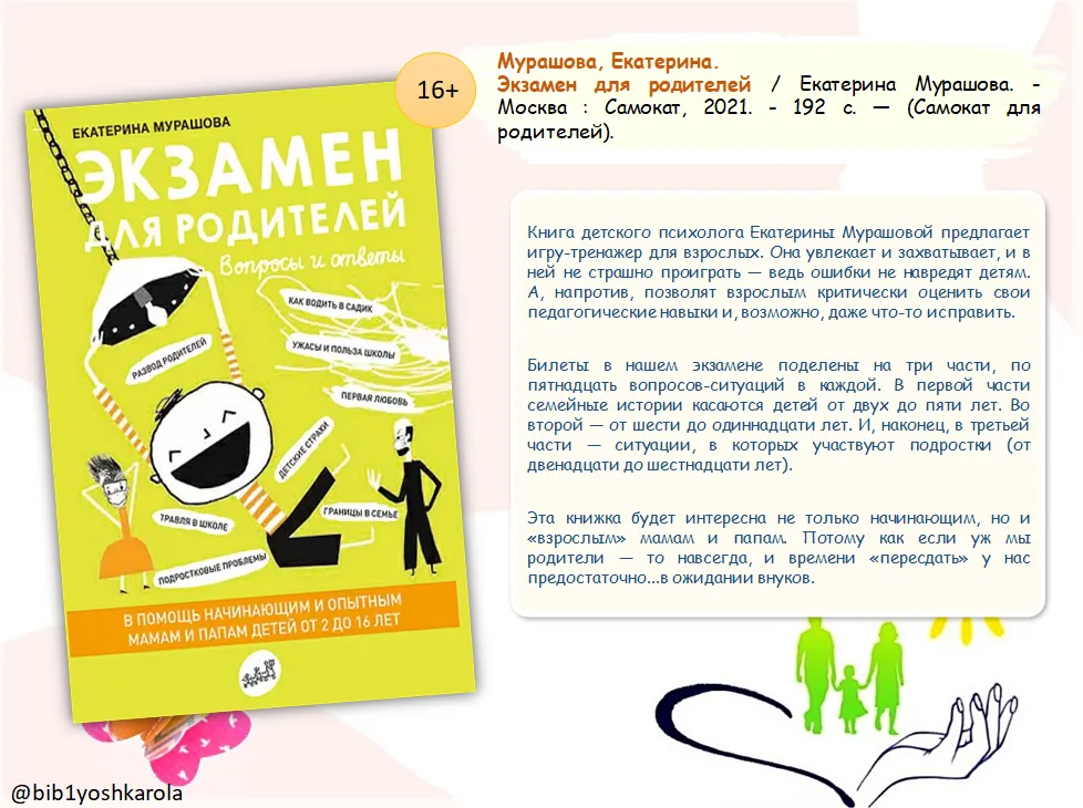 Библиотека-филиал №1 подготовила рекомендательный список книг по семейной педагогике и детской психологии, вышедших в петербургском издательстве «Самокат» в серии «Самокат для родителей». Эти книги адресованы, прежде всего, родителям. Они помогут в построении здоровых отношений между родителями и детьми. Советы, изложенные в книгах, подскажут вам, как избежать многих ошибок и трудностей.