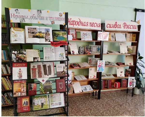 Познакомились с информацией и книгами, представленными на выставке «Щедра талантами родная сторона» по марийской вышивке и татарской национальной кухне, русским народным промыслам. Ежедневно оформлялась тематическая выставка «Нравы, обычаи и традиции», посвящённая истории, достопримечательностям, традициям и обычаям отдельных народностей: татар, русских, марийцев.