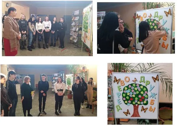 Посетители библиотеки заполнили «Дерево дружбы» разноцветными листьями, где каждый участник написал свою национальность.