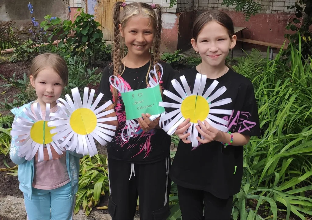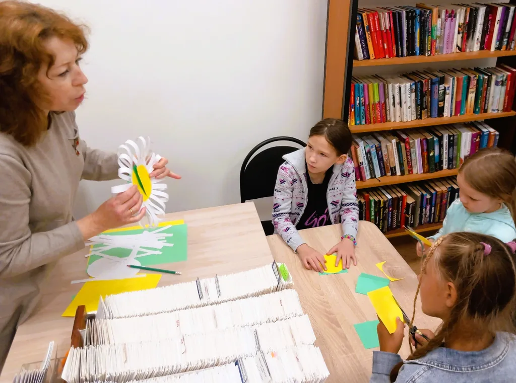 Юным читателям предлагали создать открытку своими руками с помощью приготовленных заготовок: белого картона, цветной и белой бумаги. Ребята с трепетом изготавливали открытки с изображением ромашек, чтобы подарить их своим родным.