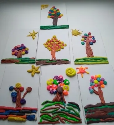Далее для детей был проведен мастер- класс по лепке из пластилина «Волшебное дерево». Работы у всех детей получились замечательные!