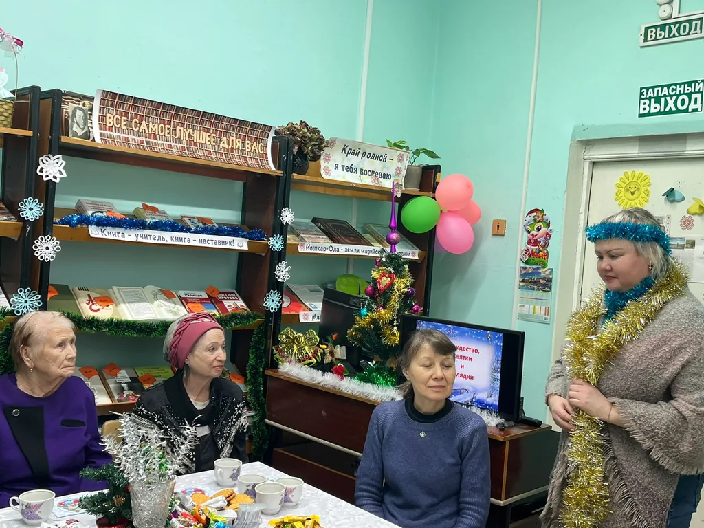 17 января в библиотеке-филиале №29 сотрудники библиотеки провели Рождественские посиделки «Наступили святки - начались колядки» для читателей (50+). С помощью электронной презентации Секретарева Елена Юрьевна рассказала о истории праздника Рождества. Участники мероприятия вспомнили о традициях и символах этого зимнего праздника - свечи, как символ огня, тепла, света; ель - вечнозелёный символ райского дерева, символ жизни, защищающий очаг от злых духов и мрака; рождественские открытки, рассылать и дарить которые друзьям и родственником стало с XIX века во всём мире доброй традицией, гирлянда и ёлочные украшения. Гостями праздника были марийские ряженые Васли кува и Васли кугыза. Они поздравили присутствующих с Рождеством спели песни и станцевали старинный марийский танец.