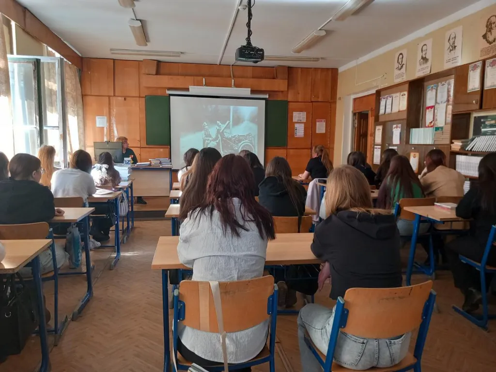 Окунулись в мир Э. Ремарка, который остаётся одним из самых любимых и читаемых немецких авторов в России. Аудитории было продемонстрировано видео, посвящённое знаменитой книге «Три товарища». Молодые люди узнали, что этот роман – третья по счёту книга Ремарка, замыкающая трилогию о «потерянном поколении», и написан он в жанре исповедальной прозы, характеризующейся сходством главного героя и автором произведения. Писатель хотел показать, как война калечит жизни ни в чём неповинных людей.