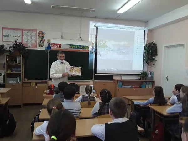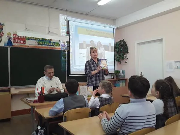 Сотрудники детского отдела библиотеки-филиала №3 подготовили и провели для учащихся 4 «В» класса средней школы №9 встречу с писателем А. А. Смышляевым (Скалой).