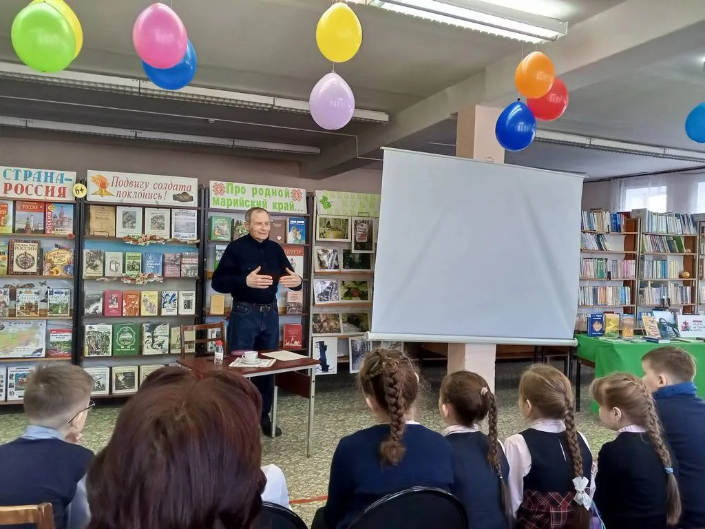 Юные читатели с интересом слушали выступление писателя и узнали, что прототипом героя повести «Горячие тропинки» – Гоши Новикова – был сам писатель. Очень много забавных историй, описанных в книге, приключилось с ним и его знакомыми в детстве. Также дети посмотрели буктрейлер по книге «Забавные приключения Пончика и Киви».