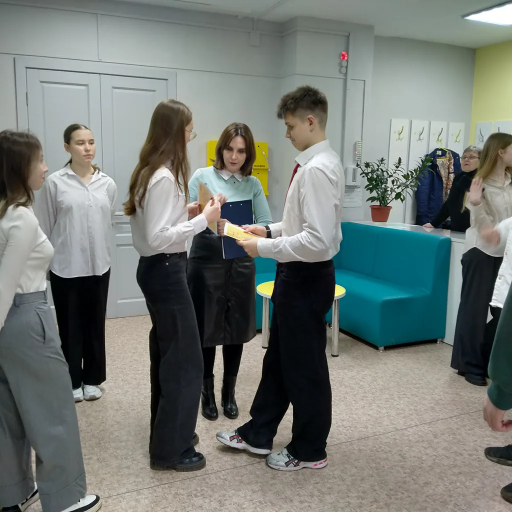Квест-игра посвящена Году защитников Отечества и 80-летию победы в Великой Отечественной войне. Школьники разделились на две команды, выбрали капитанов. У каждой команды был свой маршрут. Квест состоял из 9 этапов: «КПП», «Новобранец», «Устав», «Смотр строя», «Воинские звания», «Связисты», «Боеприпасы», «Мозговой штурм», «Донесение». На каждом этапе игры ребята выполняли задания. После их правильного выполнения, участники квеста получили фрагмент высказывания «Чтобы знать в бою удачу, крепко знай свою задачу», которое они должны были собрать в конце игры. Участники игры с большим удовольствием выполняли все предложенные задания: вспомнили пословицы на военную тему; по погонам угадывали офицерские воинские звания; отвечали на вопросы викторины, посвящённой битвам ВОв и т.д. Особенно интересно прошло испытание «Смотр строя». На этом этапе школьники построились в одну шеренгу и рассчитались на первый второй. Затем ведущие провели с ними небольшое соревнование, которое называется «Шагом марш!». Перед детьми выложили два квадрата. Первые номера по очереди вставали на первый квадрат, вторые номера – на второй квадрат. По команде ведущих ребята с закрытыми глазами маршировали в квадрате, высоко поднимая колени. Лучшим солдатом стали те из них, кто не вышел из квадрата во время марша.