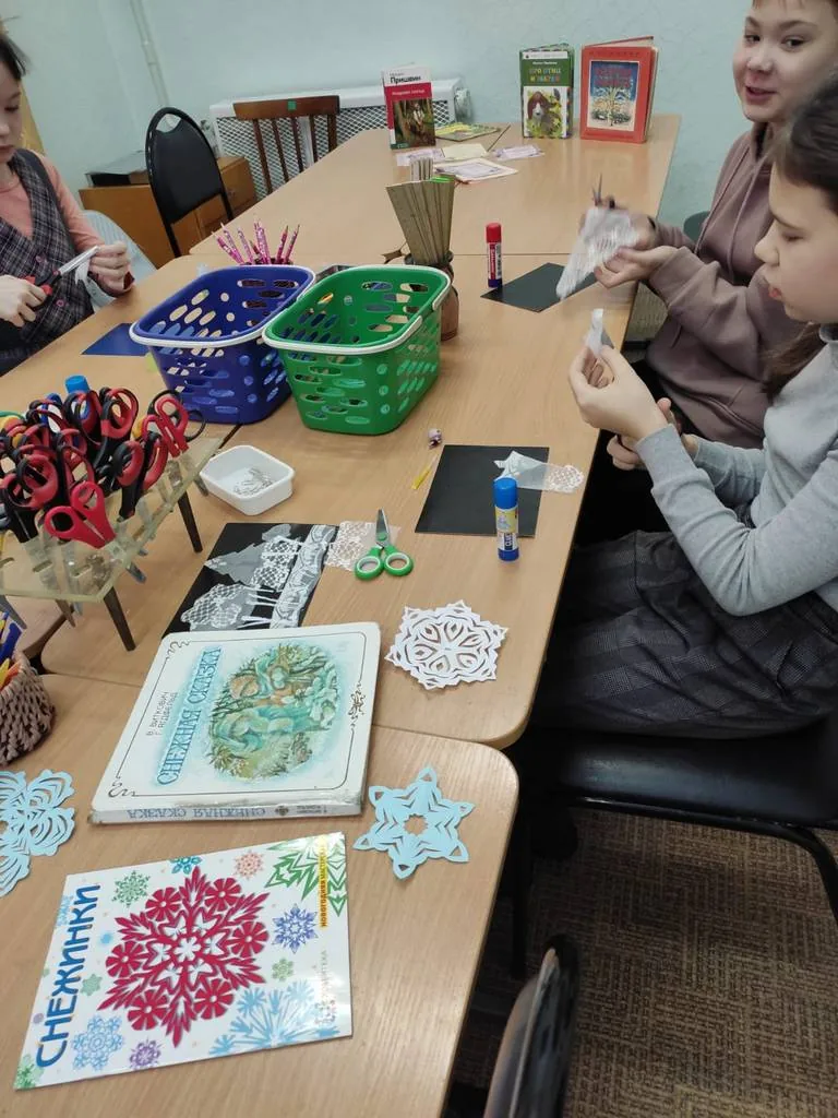 В рамках работы кружка «Книжное творчество и фантазия» с воспитанниками МБОУДО ЦДОД детский клуб «Космос» был проведен час творчества «Снежное кружево».