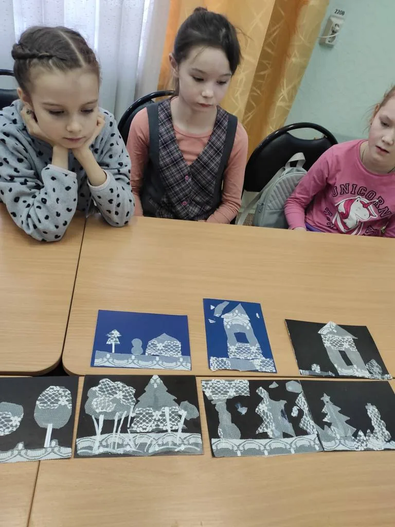 В завершении часа творчества из созданных работ ребята создали галерею «Снежное кружево».
