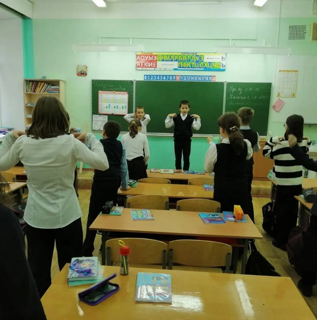 Завершилось мероприятие весёлой физкультминуткой «Поднимает руки класс».