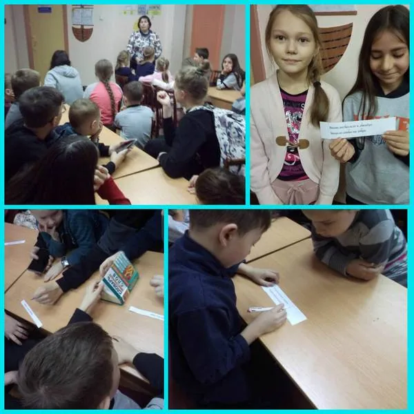 Библиотекарь рассказала о празднике, познакомила ребят с «Толковым словарем живого великорусского языка» В.Даля, «Словарем русского языка» С.Ожегова, «Словарем крылатых выражений», «Словарем литературных терминов» и другими словарями. С помощью «Орфографического словаря» дети исправляли ошибки в одноименном стихотворении М. Яснова «Орфографический словарь», а с помощью «Словаря иностранных слов» искали значение таких слов, как цирк, класс, буфет, футбол и многих других.