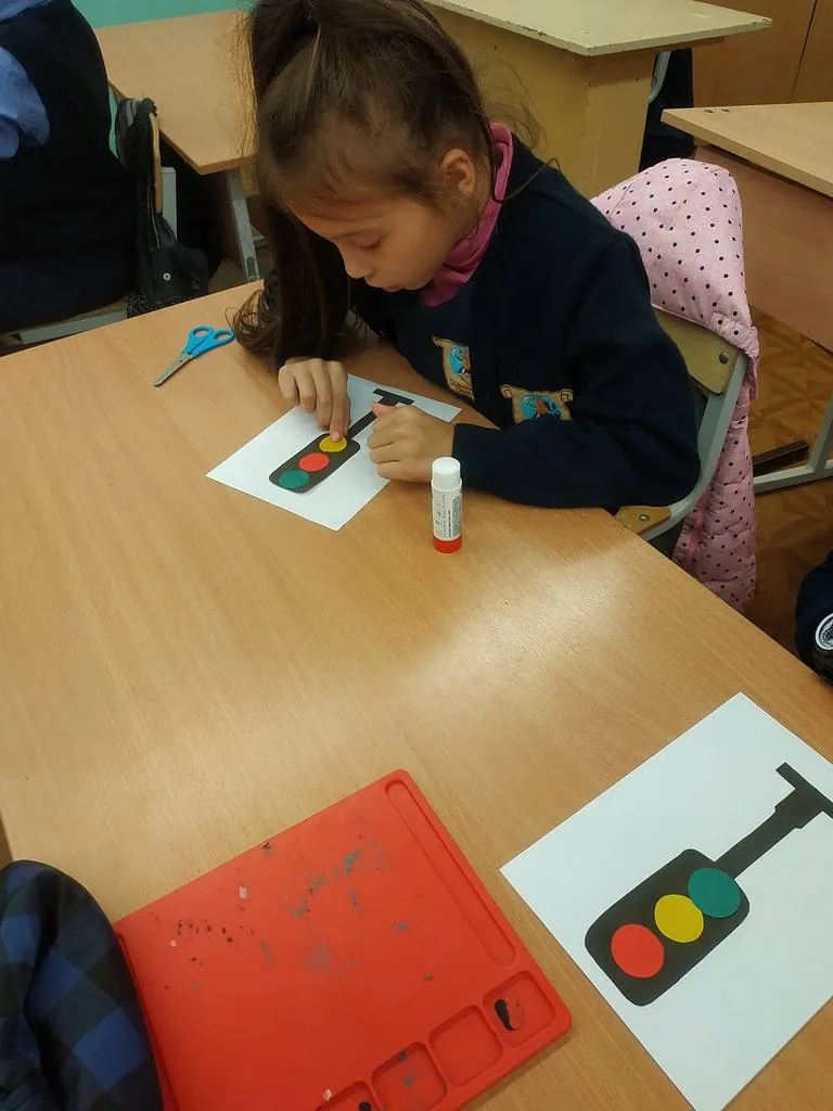 14 сентября 2022 года для детей группы продленного дня школы № 10 первого класса провели мастер-класс «Веселый светофор».