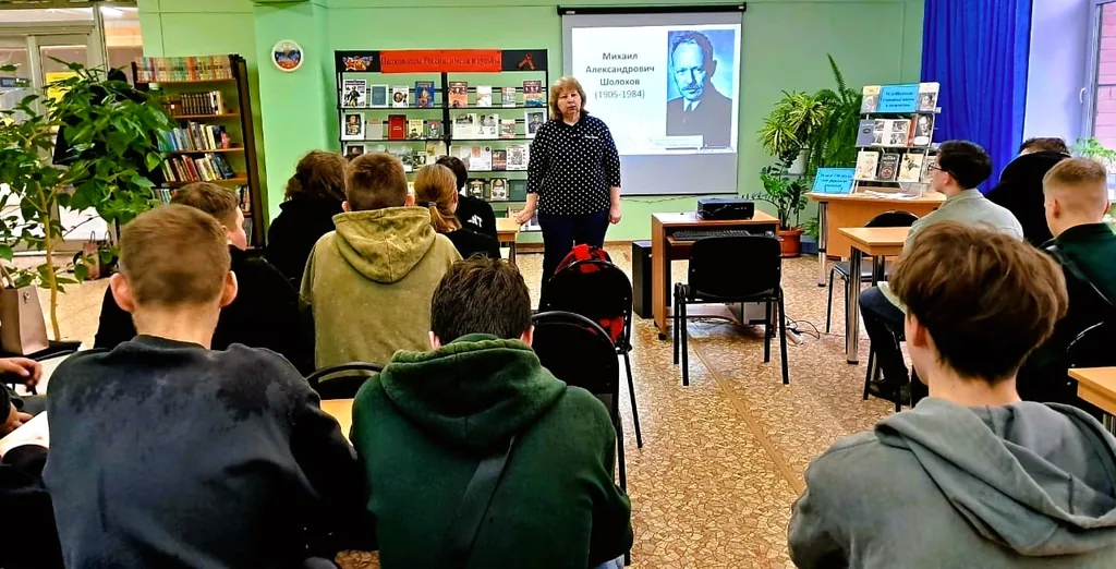 Во время мероприятия молодёжь узнала о главных книгах автора, принесших ему известность. Среди них роман-эпопея «Тихий Дон» о донском казачестве в переломное для России время. За это произведение в 1965 году М.А. Шолохов получил Нобелевскую премию. Далее разговор был продолжен о романе «Они сражались за Родину» и рассказе «Судьба человека», которые посвящены теме Великая Отечественная война. Это не случайно, сам писатель во время Великой Отечественной войны работал военным корреспондентом, опубликовал несколько очерков («На Дону», «На юге», «Казаки» и др.) и рассказ «Наука ненависти» (1942 г.)