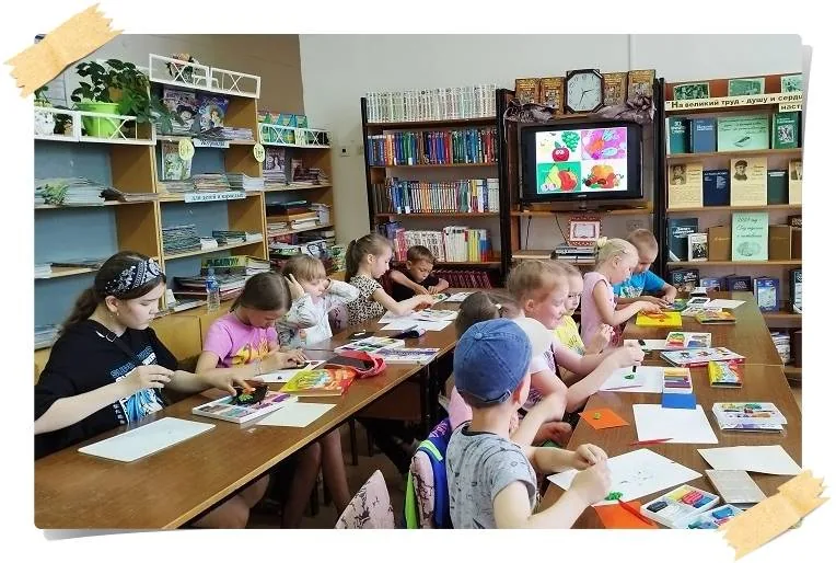 В рамках программы летнего чтения «Книжная улыбка лета» на площадке «Краски лета» в библиотеке-филиале №1 библиотекарь провела тематическую беседу с детьми и час творчества «Ягоды, овощи и фрукты - полезные продукты!». Лето – это прекрасное время года, когда стоит замечательная погода, радуют солнечные, теплые дни, природа одета в зеленые наряды. И, конечно же, летом очень много полезных для человека даров природы и необходимо воспользоваться этими дарами, обязательно употреблять в пищу свежие ягоды, овощи и фрукты, ведь в них так много витаминов.