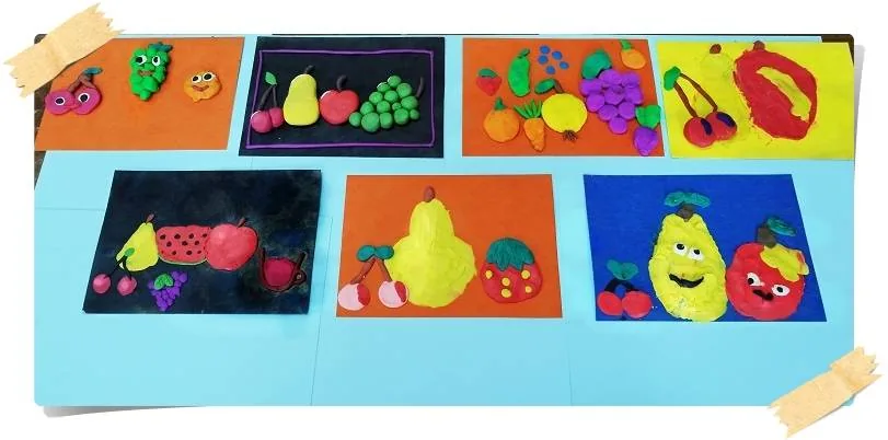 Ребята отгадывали загадки на данную тему, поиграли в игры: «Что, где растет», «Полезно - не полезно», игру-кричалку «И мы тоже…», «В лесу», отвечали на вопросы интеллектуальной викторины «Что можно приготовить?». В завершении мероприятия дети слепили пластилиновые картины любимых ягод, фруктов и овощей.