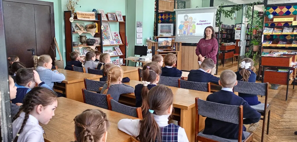15 мая в библиотеке - филиале №4 для учащихся 1 класса МБОУ «СОШ №24 г. Йошкар-Олы» прошел тематический час «Семья - сокровище души». Семья - самое главное в жизни каждого человека, семья - это близкие и родные люди, те, кого мы любим, с кого берем пример, о ком заботимся, кому желаем добра и счастья. В начале мероприятия ребята узнали об истории праздника и его общественной значимости во всем мире, посмотрели видеофильм «Что такое семья?». Поговорили о семейных ценностях и соблюдении добрых традиций, объединяющих родных и близких, об истории семьи, о взаимоотношениях нескольких поколений. Школьники поделились тем, как они помогают родителям по дому, ведь семья - это и труд, и опора, и любовь, и дружба, и забота о близких людях. Участники мероприятия вспомнили пословицы и песни о семье, с радостью и интересом приняли участие в конкурсах и викторинах: «Без чего дома не бывает», «Изобрази», а также с удовольствием заполнили генеалогическое дерево семьи. В завершении был показан поучительный, советский мультфильм «Кукушка и скворец».