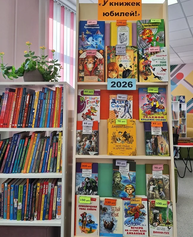 В модельной библиотеке-филиале №1 подготовлена выставка-обзор «У книжек юбилей!», посвященная книгам-юбилярам 2026 года. Юбилей книг не простой праздник, а серьезная дата. Каждая книга имеет свою историю написания, в том числе дату рождения - год, когда она впервые была опубликована.