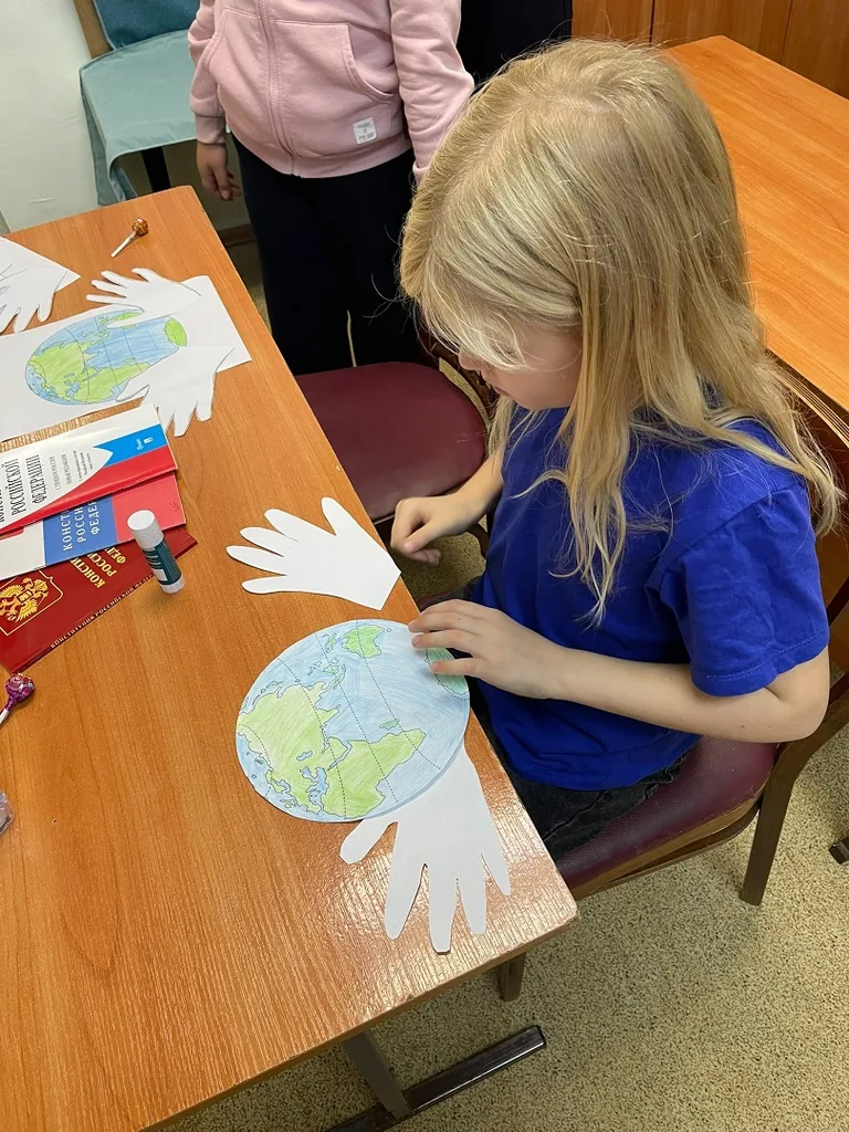 Ребятам очень понравился рассказ о защите природы, поэтому в завершение занятия они с удовольствием смастерили поделку из бумаги – «Земной шар в надежных руках».