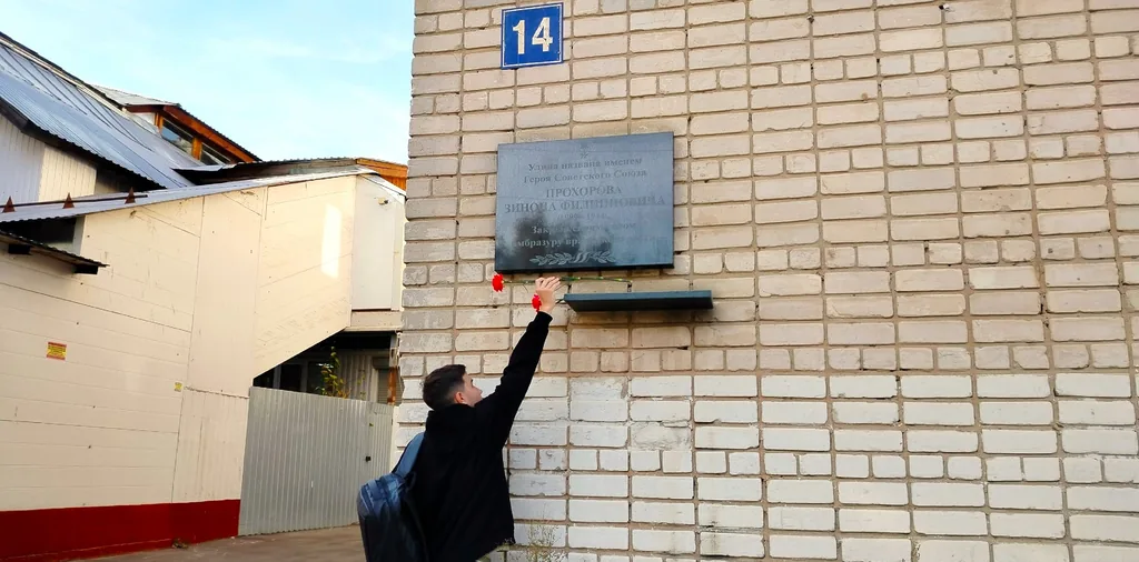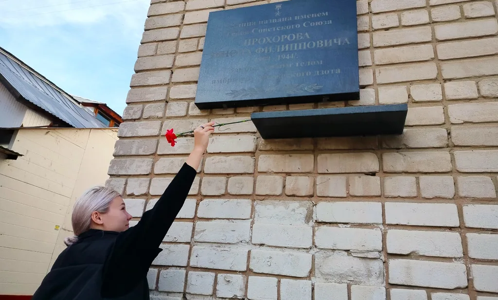- торжественная часть с возложением цветов к мемориальной доске Героя (ул. Прохорова, дом 14);