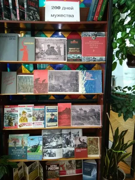 К мероприятию была оформлена книжная выставка «200 дней мужества», где представлены книги, повествующие о тех самых событиях, которые происходили в полуразрушенном Сталинграде, рассказывающие об этом героическом событии, а также книги для детей такие, как З. Александровой «Маленькие солдаты Великой Отечественной», С Алексеева «Сто рассказов о войне» В. Шмерлинга «Дети Ивана Соколова» и другие.