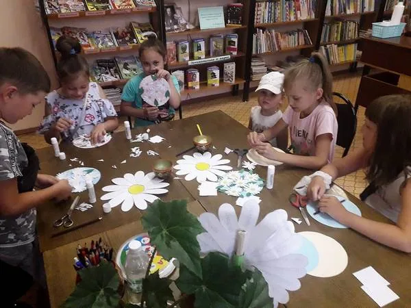 В библиотеке-филиале №19 в рамках программы летнего чтения «Книжная улыбка лета» и городского проекта «Летом! Вместе! Всем двором!» в летней мастерской «Веселое Ателье Художника» для детей прошло увлекательное занятие «Ромашки – цветы полевые», посвященное Всероссийскому дню семьи, любви и верности.