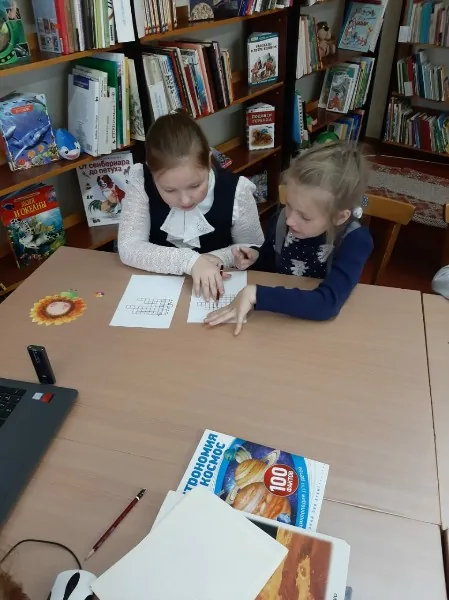 Дети познакомились с биографией писателя, его творчеством. Затем библиотекарь рассказала ребятам о космосе, планета, звездах, метеоритах, кометах, астероидах, галактике, астрономии, как науке о космосе. Дети с удовольствием посмотрели видеоролик по произведению К.Булычева "Тайна третьей планеты"о весёлых космических приключениях девочки Алисы и её папы, отвечали на вопросы викторины "Алиса и её друзья". Затем старательно разгадывали кроссворд "Тайны Галактики".