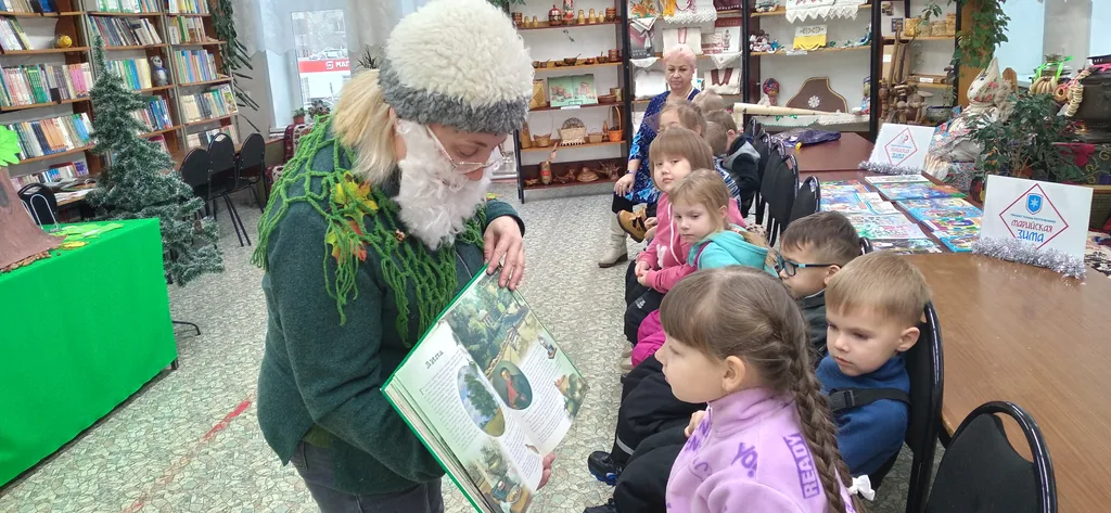 На встречу с юными друзьями библиотеки пришел Старичок-Лесовичок, который, побеседовав с детьми о бережном отношении к природе, предложил отправиться в увлекательное путешествие по лесам Марий Эл. Очутившись в «лесу» дети узнали о том, что жизнь марийцев издавна была тесно связана с лесом, а главным деревом марийских лесов является ель. Познакомились и с другим хвойным деревом – сосной, а затем поучаствовали в физкультминутке «Шишка сосновая – хлоп, шишка еловая – топ».