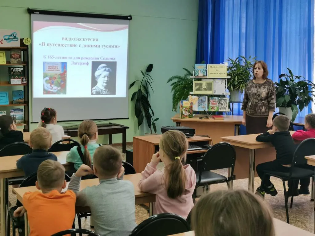 В Центральную библиотеку имени Р. С. Иванченко на виртуальную экскурсию «В путешествие с дикими гусями», приуроченную к 165-летию шведской писательницы Сельмы Лагерлёф, пришли воспитанники подготовительной группы МБДОУ «Детский сад № 53 «Изи патыр».