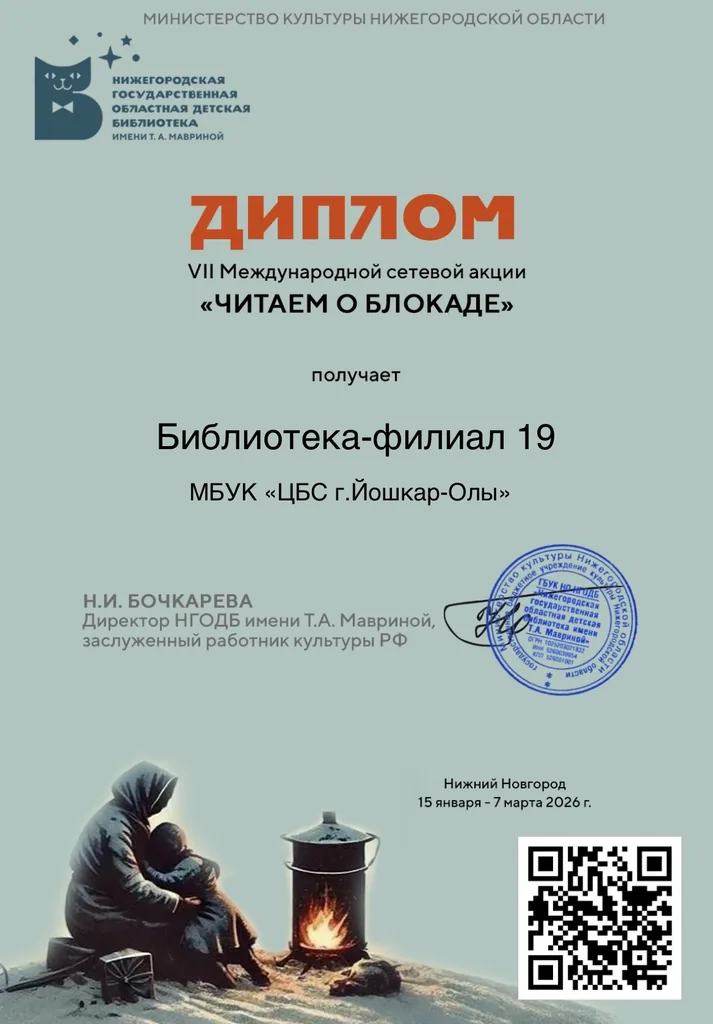Сотрудники библиотеки-филиала №19 провели ряд мероприятий, приуроченных к 82-й годовщине снятия блокады Ленинграда для воспитанников старших групп детских садов №49 «Лесная сказка», Знаменского детского сада «Василек», а также для учащихся 5 «Д» класса МБОУ «СОШ №15 г. Йошкар-Олы». Дети присоединились к VII Международной сетевой акции «Читаем о Блокаде», организованной ГБУК «Нижегородской государственной областной детской библиотекой им. Т.А. Мавриной.