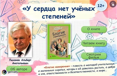 Познакомиться с творчеством Альберта Лиханова, с его книгой «Благие намерения» можно с помощью интерактивного плаката «У сердца нет учёных степеней».