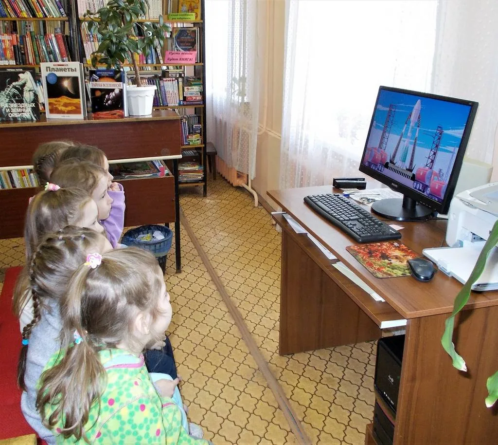 Библиотеку-филиал №19 посетили воспитанники старшей группы МБДОУ «Детского сада №49 «Лесная сказка» Для них библиотекари подготовили виртуальное путешествие «Дорога в Космос»