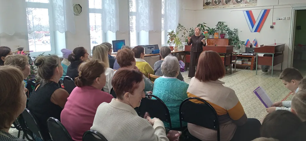 Продолжился Утренник выступлением Раисы Андреевны Фоминых (Андреевой), нашей читательницы, члена Союза писателей России. Она прочитала свои стихи «Воробьиный концерт», «Дождь» и др. Другая наша читательница, Фатерова А.П. подарила библиотеке свою картину. Конкурсная программа, где отгадывались загадки про весну и сказочных героев, где нужно было дополнить пословицу про весну, пройти кулинарный батл – дети говорили букву алфавита, а взрослым надо было придумать блюдо или продукт на эту букву (дети дружно помогали своим мамам и бабушкам), вызвала неподдельный интерес и восторг, смех и радость у присутствующих на Утреннике, дети болели за мам и бабушек, а взрослые – за детей и внуков.