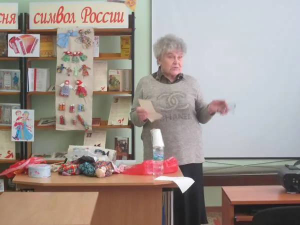Г.А. Кокорина интересно и содержательно говорила о куклах, об их разновидностях, о выставках своих кукол в разных музеях. Её выступление напомнило каждому своё. В.С. Кузнецова вспомнила своё голодное детство на оккупированной немцами территории в Брянской области, свою маму…