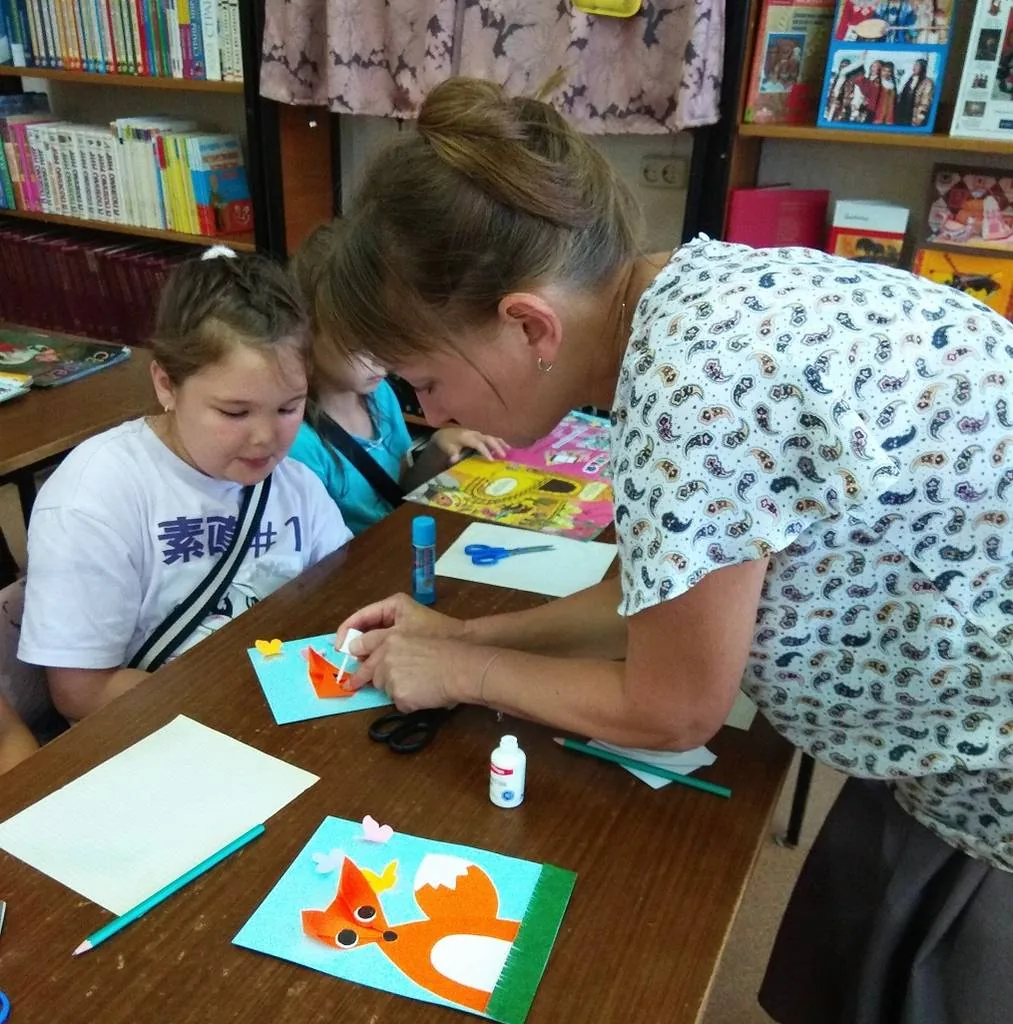 Затем ребята должны были отгадать тему конструирования из бумаги. Были загаданы загадки, ребята отгадали, что это лиса. Библиотекарь прочитала стихи о лисе, дети отвечали на вопросы: «в каких сказках встречается этот зверек?», «как часто называют лису в сказках, какие черты характера ей присущи?».