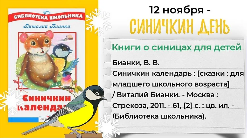 Библиотека-филиал №19 приглашает посмотреть видеопрезентацию «Встретим вместе Синичкин день».