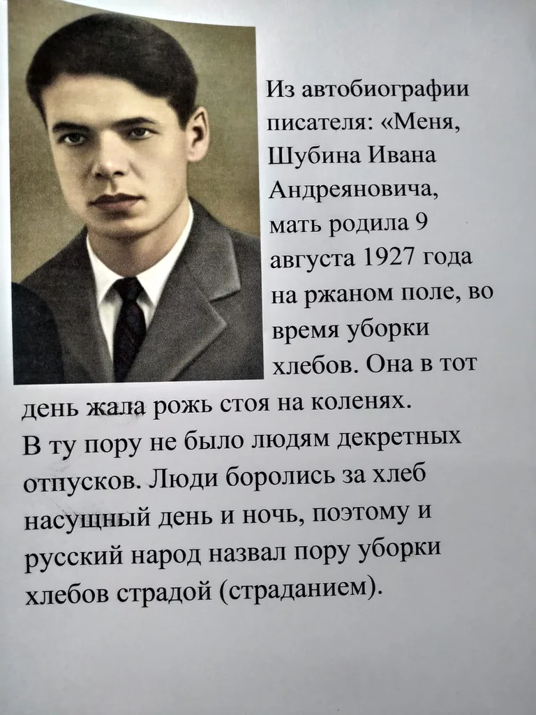 Иван Шубин был творческим человеком, влюблённым в природу, способным видеть красоту там, где многие проходят мимо. Его вдохновение рождалось среди полей, лесов и рек... Из воспоминаний автора: "Оттого ли, что я родился под чистым небом, очень любил природу, сбор ягод, малины, грибов, бродяжничество с ружьём, рыбная ловля с удочкой - это была моя стихия.