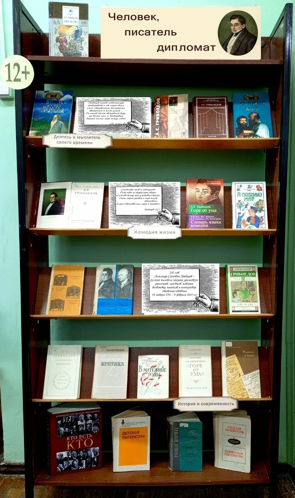 15 января 2025 года русскому писателю, прозаику, драматургу, дипломату, лингвисту, историку, востоковеду, пианисту и композитору Александру Сергеевичу Грибоедову исполнилось 230 лет. Гениальный художник, один из основоположников русского реализма, автор замечательного произведения русской стихотворной драматургии - бессмертной комедии «Горе от ума», мыслитель своего времени, оказавший огромное влияние на развитие национальной русской культуры. К этой важной дате в библиотеке - филиале №4 оформлена книжная выставка «Человек, писатель, дипломат», на которой представлены книги с его биографией и творчеством. Выставка содержит три раздела: «Деятель и мыслитель своего дела», «Комедия жизни», «История и современность».