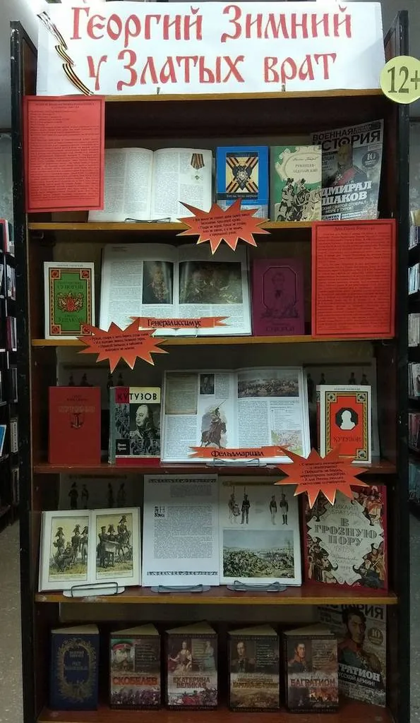 В библиотеке-филиале № 3 оформлена выставка-дата «Георгий Зимний у Златых врат», посвященная Дню Героев Отечества. 9 декабря (26 ноября по ст. стилю) в зимний день Георгия Победоносца в 1769 г. императрица Екатерина Великая учредила для офицеров высшую награду ‒ Орден Святого Георгия… Это единственный русский орден, которым награждали только за военные заслуги. В императорской России существовала традиция чествовать в день св. Георгия всех кавалеров Георгиевских отличий ‒ от таких прославленных людей как А. В. Суворов, Г. А. Потемкин, М. И. Кутузов до простых солдат, матросов и казаков. После 1917 г. орден, а вместе с ним и праздник, были упразднены. 8 августа 2000 г. орден Святого Георгия был восстановлен в качестве высшей военной награды России, а в 2007 г. был возрожден и праздник ‒ День Героев Отечества, который впервые отмечался в России 9 декабря 2007 г.