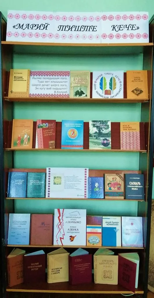 К дню марийской письменности в библиотеке-филиале №4 подготовлена выставка - дата «Марий тиште кече». Литература адресована лингвистам и тем, кто интересуется памятниками письменности марийского языка. На выставке представлены словари, разговорники и сборники статей, посвящённые изучению истории марийского языка, которые помогут молодым филологам, кому небезразлична его история. Марийская письменность сегодня достигла высокого уровня развития, она отвечает требованиям современной лингвистической науки и прочно вошла в жизнь и быт марийского народа.