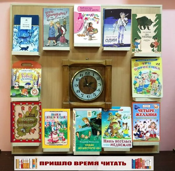Часы. Казалось бы, что здесь может быть необычного? Чем они могут удивить и поразить воображение современного человека? Но в нашей библиотеке появились именно такие часы, часы–книжная выставка. Цифрами на этом циферблате служат книги. Надеемся, что эта выставка заинтересует как наших постоянных читателей, так и ребят из пришкольного лагеря. А для наших взрослых читателей к осени появится уже обновлённый циферблат.