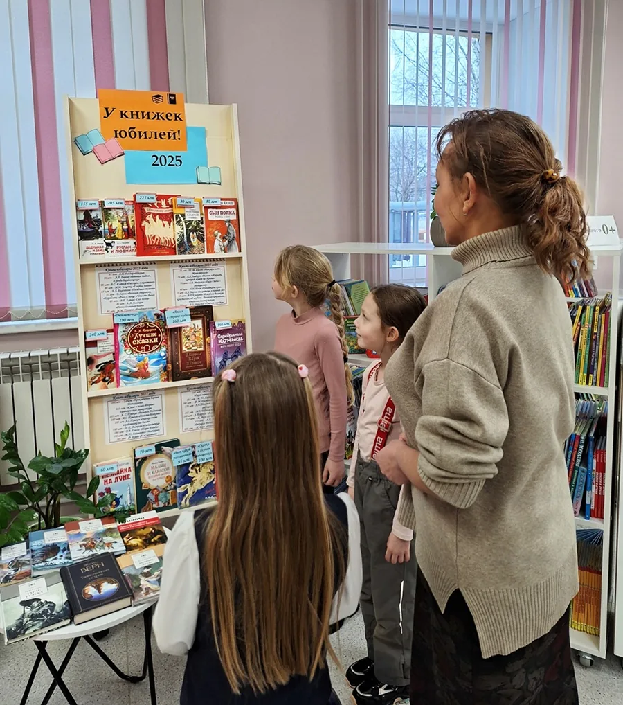 В модельной библиотеке-филиале №1 в зале актуального чтения подготовлена выставка-обзор «У книжек юбилей!», посвященная книгам-юбилярам 2025 года для юных читателей возраста 6+.